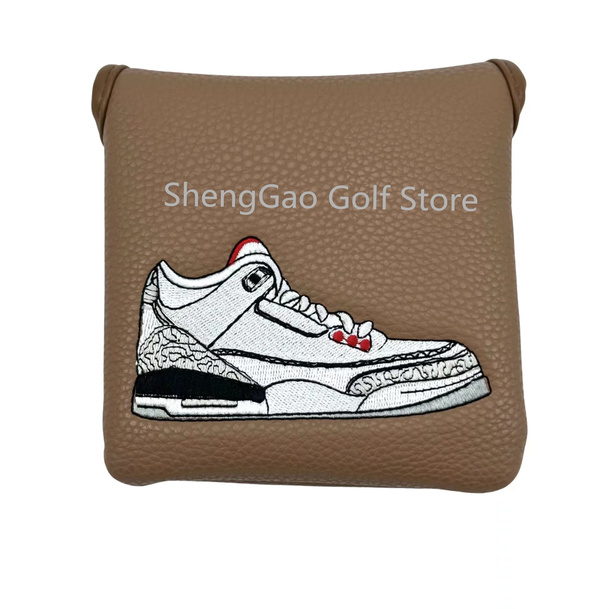 1Pc Shoes Pattern Golf Putter Cover PU Leather Large Mallet Golf Head Cover Magnetic Closure Golf Head Cover